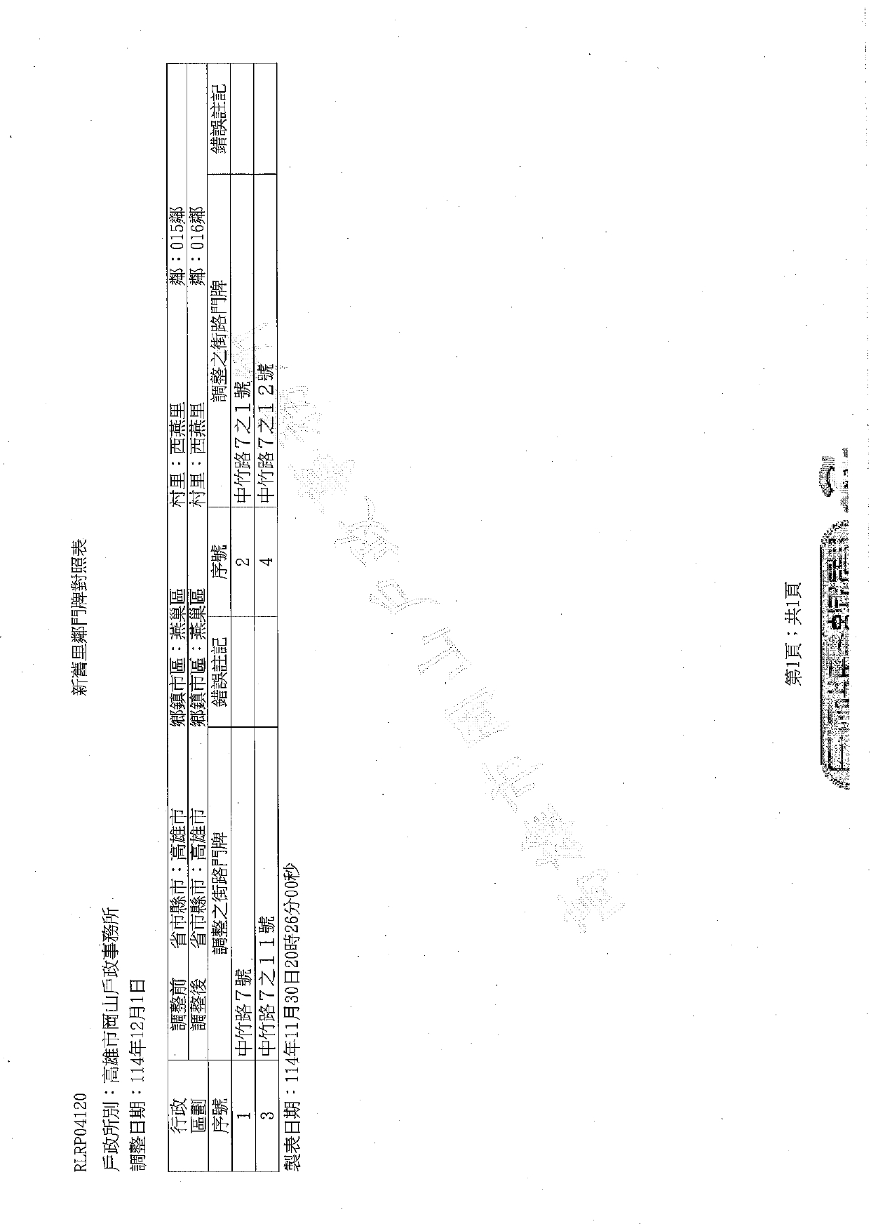 配合燕巢區公所鄰調整作業,西燕里行政區域調整於114年12月1日生效。